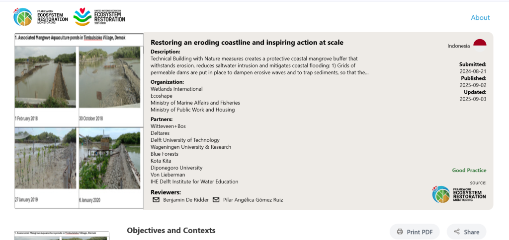 EcoShape is proud to share that our flagship program, Building with Nature Indonesia, is now featured on the FERM platform — the Common Search Engine for Good Practices on Ecosystem Restoration.